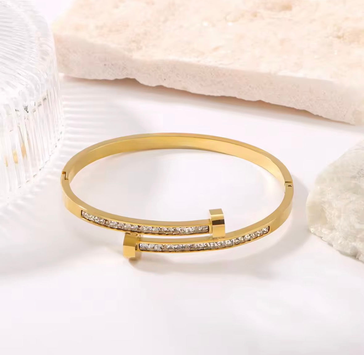 The Daphne Bangle offers a sculptural edge to your accessory collection, balancing bold design with a tarnish-free finish. It's the ultimate standard for high-quality style, designed to shine through the light of your daily life.