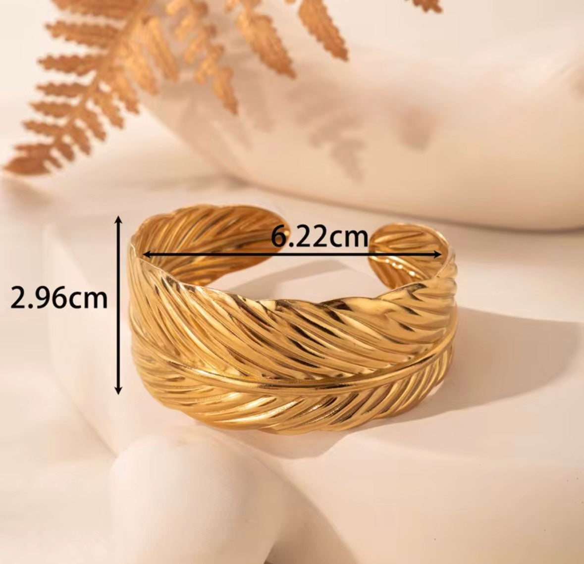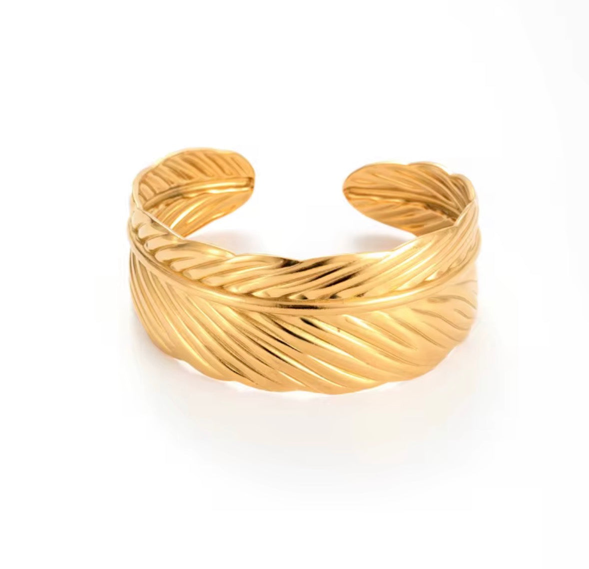 The Laurel Bangle offers a sculptural edge to your accessory collection, balancing bold design with a tarnish-free finish. It's the ultimate standard for high-quality style, designed to shine through the light of your daily life.